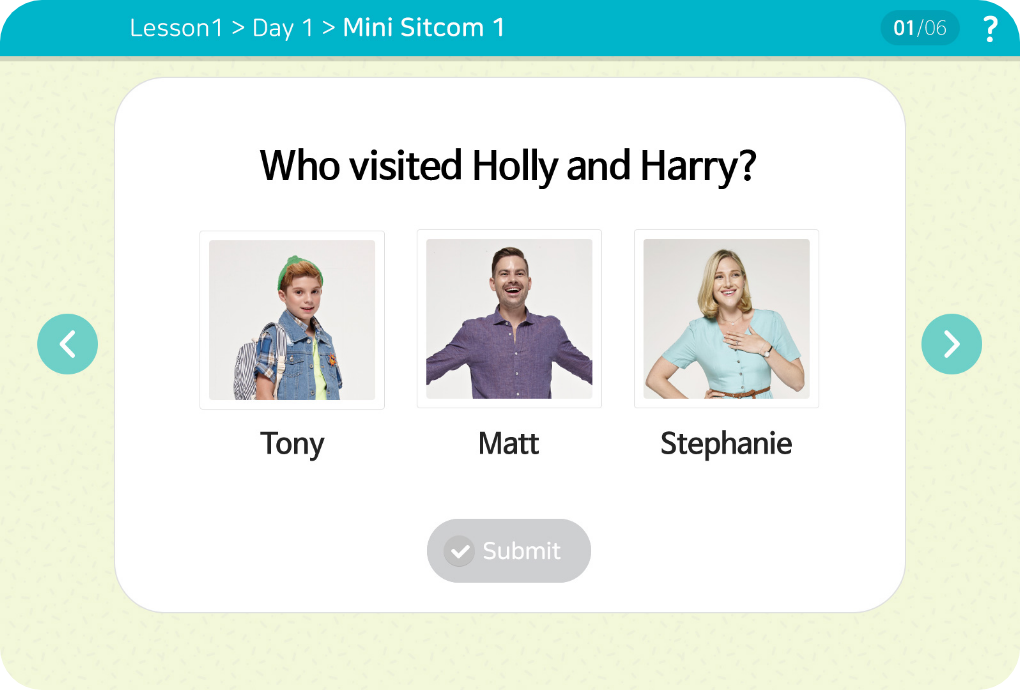 - 시트콤 내용을 이해할 수 있어요.- 일상 생활에 쓸 수 있는 표현을 말할 수 있어요.- 자기주도학습 습관을 키워요.